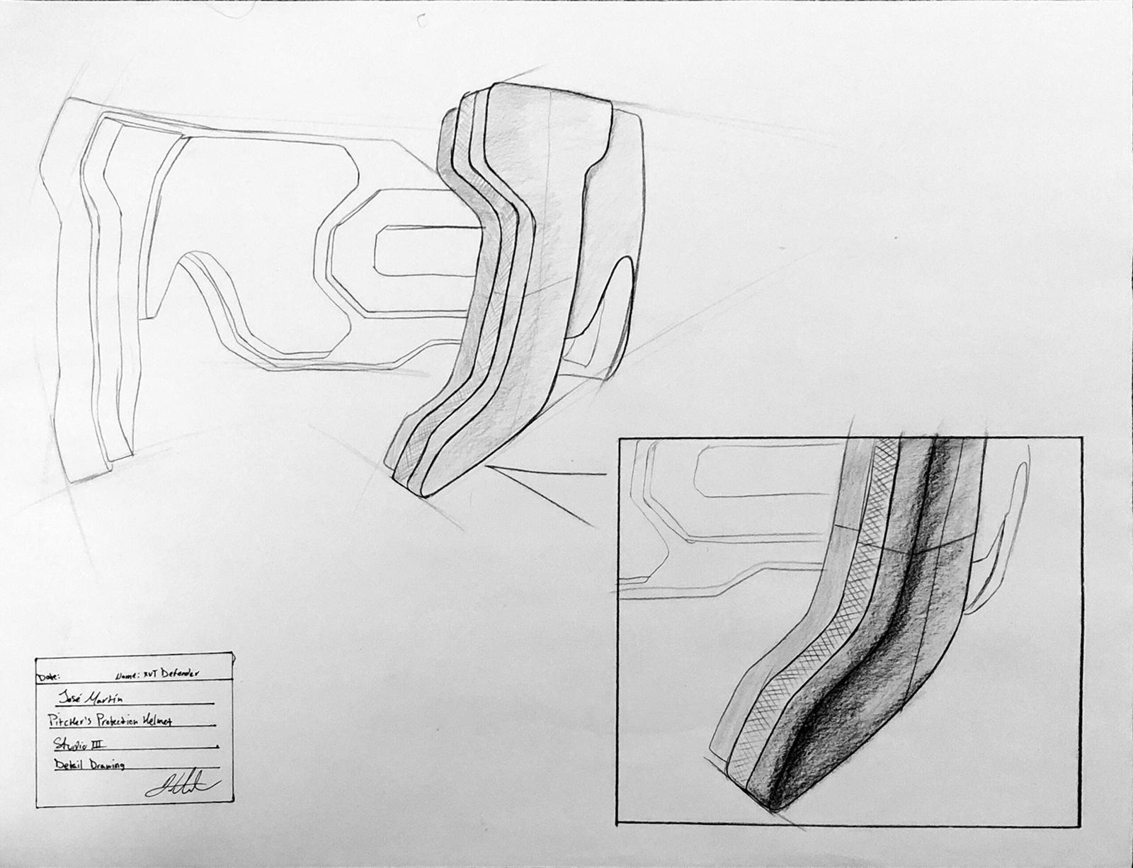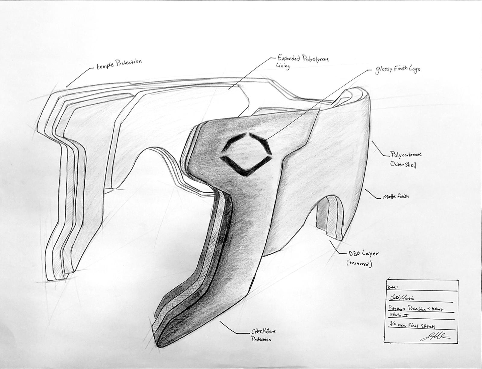 The XVT Defender is a fitted helmet designed for maximum protection against line drives to the pitcher's head. The helmet offers temple and cheekbone protection without blocking the player’s peripheral vision, as well as protection for the occipital area of the players head. The purpose of this project was to design for a company of one’s choosing in order to extend the company’s product line.